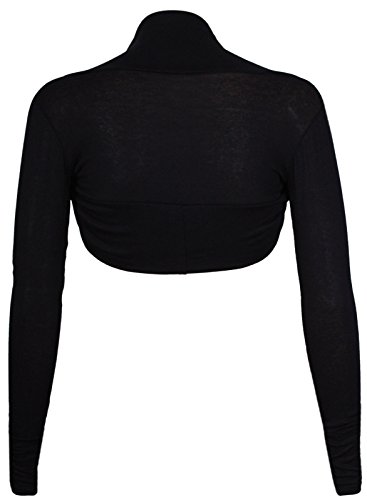 Da donna Tinta unita Fashion 4 meno Muta da donna a maniche lunghe anteriore aperto elastico con una fila di Bolero Maglia Boleros, nella parte superiore e, Nero, M/L - UK(12-14)