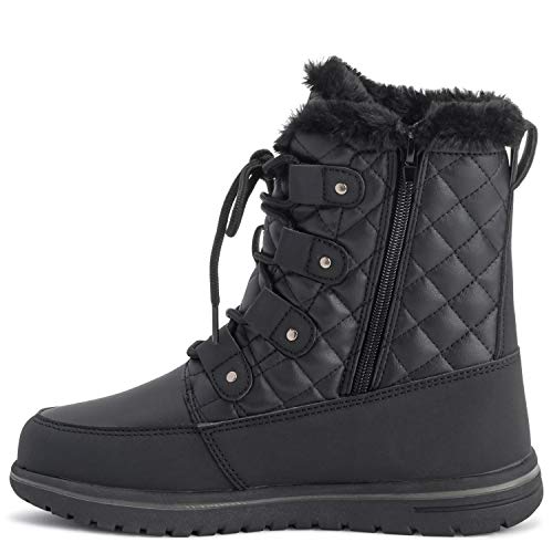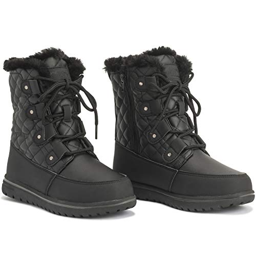 Donna Trapuntato Corto La Neve Inverno Pelliccia Ecologica Caldo Durevole Impermeabile Stivali - 4 - BLK37 AYC0523