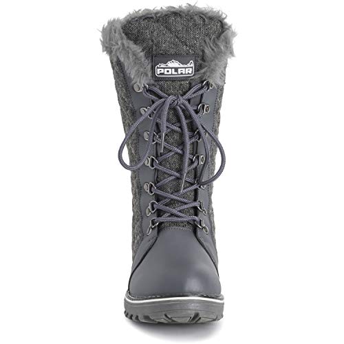 Donna Trapuntato Pellicce di Faux Allineate Inverno Caldo Comodo La Neve Pioggia Alti Ginocchio Stivali - Grigio Tessile - UK9/EU42 - YC0500