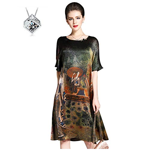 Donna Vestito Estate Abito in Seta Stampato Big Swing Vestiti Sciolto Elegante Girocollo Manica a 1/2 Abito (M, Colore)