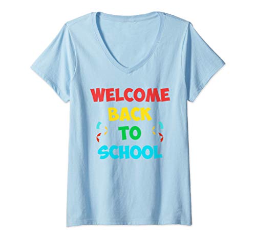 Donna Welcome Back To School TShirt Funny Teacher Love gift TShirt Maglietta con Collo a V