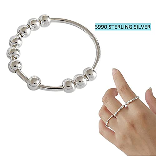 Donne Ansia Anelli, S990 Sterling Argento Anelli, Anello Perline Argento Sterling, Strumenti Decompressione, per Uomini Donne Regali di Gioielli