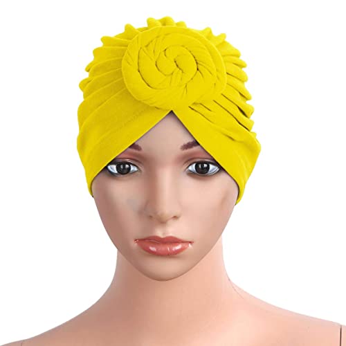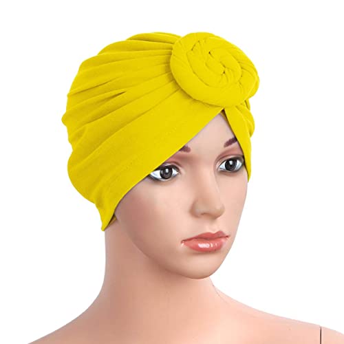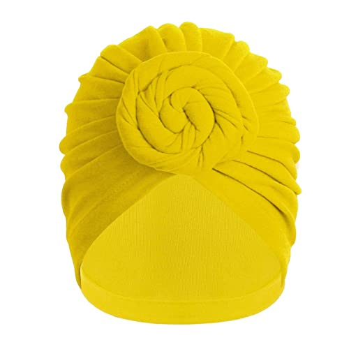 Donne Cappello Turbante Morbido Cotone Pre-leccato Headwrap Annodato Cotone Berretto Berretto Beanie hearwear chemio Cappello Perdita di Capelli Cappello (Color: Yelllow, Size: One Size)