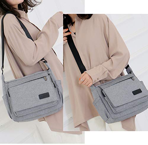 Donne Casual Borsa a Tracolla Multi Tasche Impermeabile Chiusura Borsa Nylon Viaggio Borse e Borse, Grigio (Evelina), Medium