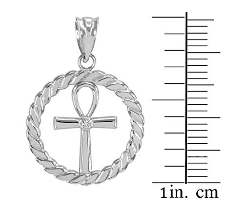 Donne Collana Pendente Argento Sterling 925 Cordata Circolo Egiziano Ankh Croce Con Zirconia (Viene Fornito Con Una Catena Da 45cm)