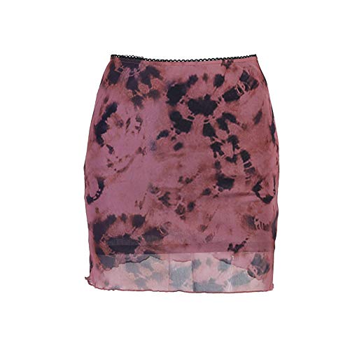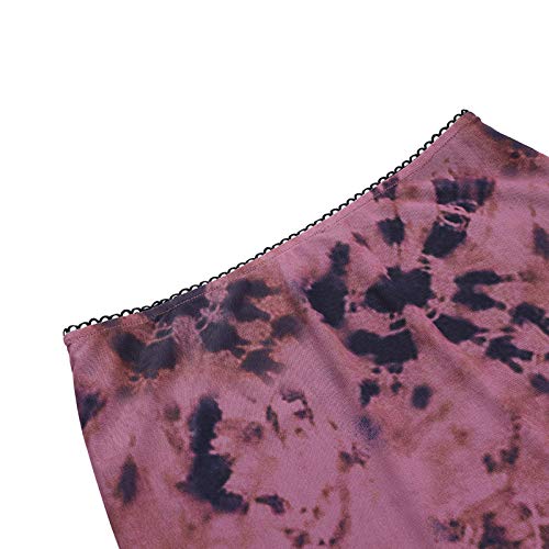 Donne Maglia Aderente Mini Gonna Y2K Vita Alta Tie Dye Stampa Ruffle Trim Gonna A Matita Corta E-Girl Streetwear Viola 36