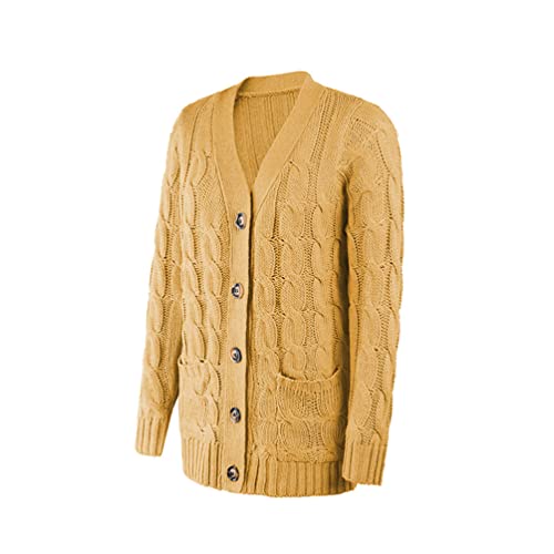 Donne Maglioni Autunno Inverno Top Manica Lunga Chamarras Button Cardigan, Giallo, M