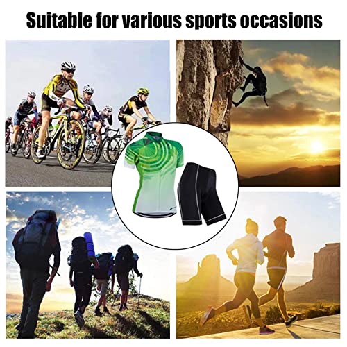 Donne Manica Corta Jersey Abbigliamento Set, Ciclismo Magliette Corta Jersey Camicia + 3D Gel Imbottito Pantaloncini Ciclismo Equitazione Bike Sportswear (Lime, S)