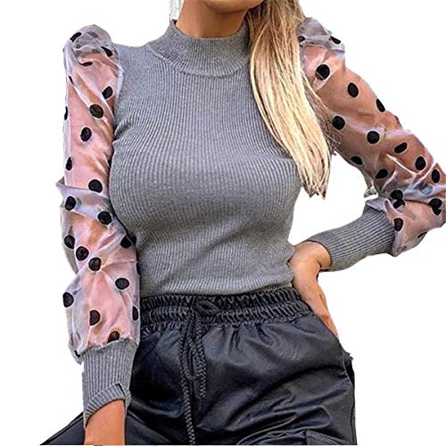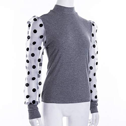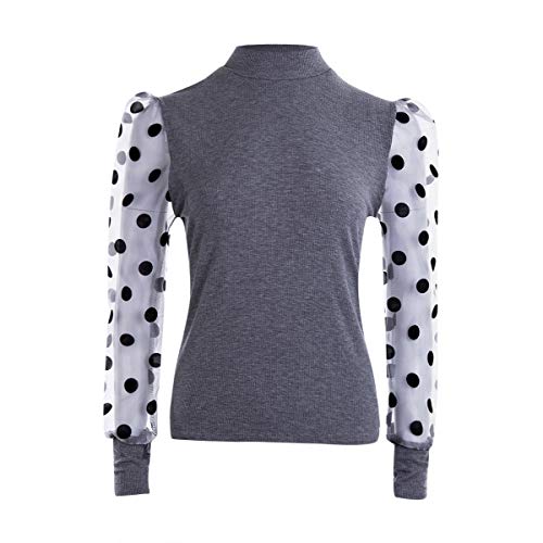 Donne Primavera Maglia A Soffio Manica Lunga A Costine Camicia A Maglia Allentato Casual A Pois Camicetta Top Elegante Dolcevita Partito Clubwear Grigio S