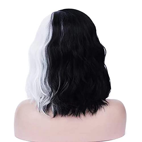 Donne Ragazze Parrucca in Bianco e Nero Crudelia Costume Cosplay Parrucche Corte per Capelli Ricci e Mossi Festa di Halloween Fantasia Principessa Deville Vestire Accessori