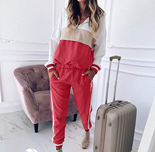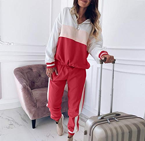Donne Tuta da Ginnastica Manica Lunga Sport Fitness Sportivo Felpe con Cappuccio Patchwork Donna Felpa e Pantaloni Tuta Set Jogging Pantaloni