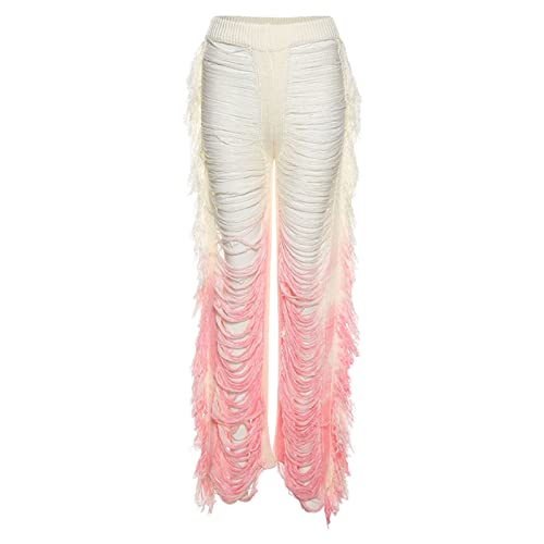 Donne Uncinetto Maglia Coprire Pantaloni Scava Fuori Distrutto Strappato Nappa Fringe Gamba Larga Pantaloni Tie Dye Bottoms Pantaloni Dritto Spiaggia, rosa, S