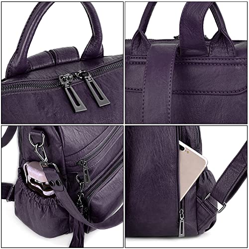 UTO Donne Zaino Casual in pelle sintetica Robusta Zaino Borsa a tracolla 3 tipi di maniglie Zaino Maniglia a tracolla Multi scomparto con cerniera posteriore Antifurto Tasca nappe, Nuova Malva, L