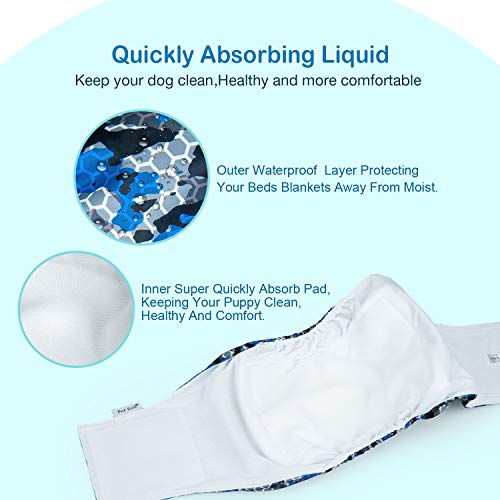 3 pannolini per cani con dimensioni regolabili: 3 pezzi in stile mimetico in una confezione per pannolini per pancia. Con un potente velcro, queste bende per cani maschi possono essere indossate immediatamente con un solo gesto. Inoltre, può essere regolato in base alle esigenze del cane. Con l'elastico in vita, molto comodo e non stretto, riduce la pressione e rende il tuo cane più a suo agio