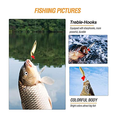 【Con ganci affilati】 I ganci dei cucchiai da pesca hanno barbe affilate, possono aiutare a catturare più pesci. Grandi esche per trota, luccio, spigola, pesce persico, salmone, crappie e lucci settentrionali, ecc.