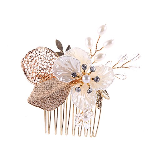 Dontdo - Fermaglio per capelli a forma di foglie e strass, alla moda, con strass e perle finte