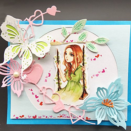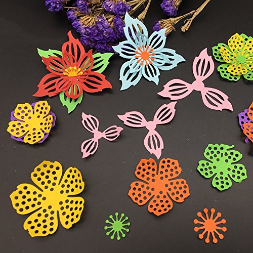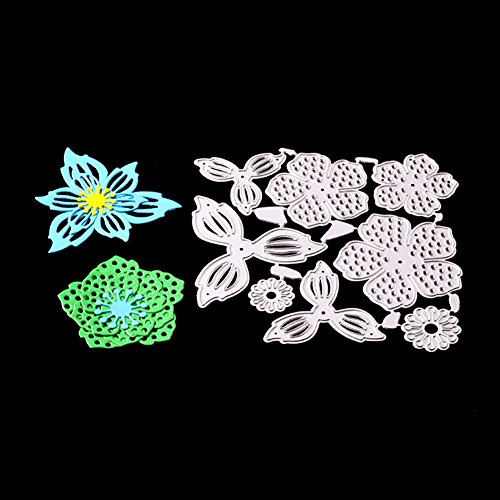Dontdo Matrice da taglio in metallo, 8 pezzi, fiori e foglie, per fustellatura, goffratura, stencil, per album per ritagli, biglietti di auguri, regalo di compleanno 9.8cm x 9.9cm Silver