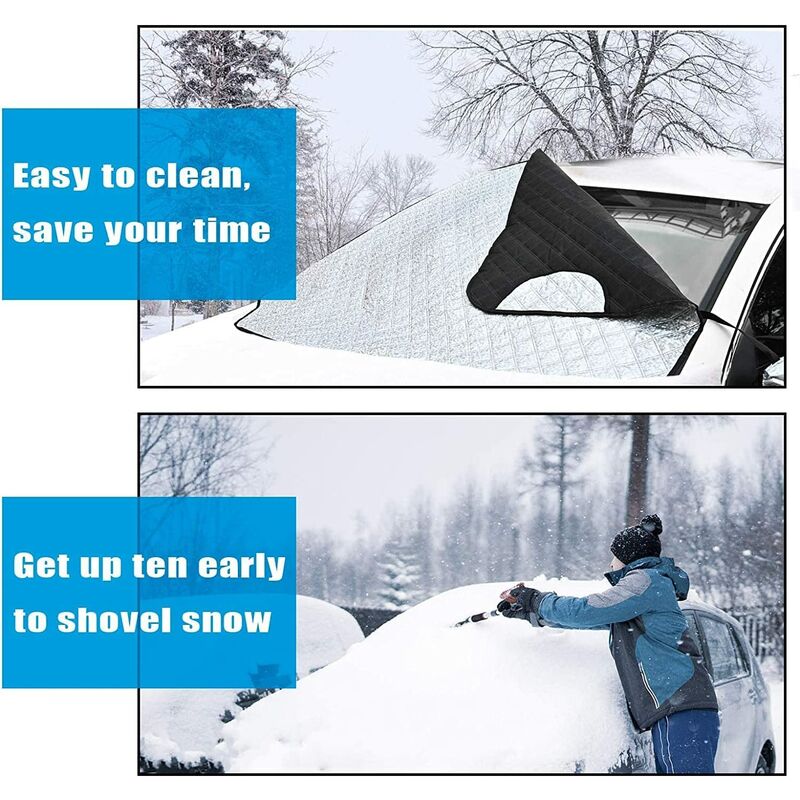 La copertura magnetica del parabrezza ha 4 strati di materiali diversi per garantire una protezione totale da pioggia, neve e ghiaccio: foglio di alluminio PEVA (impermeabile, anti-UV, facile da pulire), foglio di cotone (previene inoltre l'acqua o il gelo), spesso cotone composito e morbida fodera interna (previene i graffi). proteggere lo specchietto retrovisore e rendere visibile la tua auto di notte?: La copertura antirumore -Il ghiaccio per auto può fornire un'eccellente protezione contro l'accumulo di neve o ghiaccio sul parabrezza in inverno. Proteggiti dai raggi UV in estate, blocca la polvere in primavera e stai lontano dalle foglie cadute in autunno e dagli escrementi di uccelli nell'erba. Mantieni sempre il parabrezza pulito e pulito, non c'è bisogno di raschiare il ghiaccio nella fredda mattinata: per installare il manto nevoso sono necessari solo tre passaggi. Per prima cosa, metti le orecchie laterali sulla portiera dell'auto, quindi metti la copertura dello