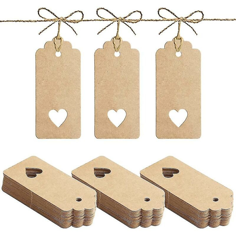 Dettaglio pacchetto 100 etichette regalo per regali. I nostri cartellini marroni con cordino di iuta naturale marrone da 98 piedi/30 metri, una quantità sufficiente per confezioni regalo. .Materiale e dimensioni Le etichette regalo sono realizzate in carta kraft premium, liscia da scrivere e l'inchiostro non è permeabile e la dimensione dell'etichetta è di circa 4 x 9 cm/1,5 x 3,5 pollici. Puoi anche scrivere benedizioni o nomi sui tag di carta kraft. .Lovely Hollow Heart C'è un bel foro a forma di cuore preforato su ogni etichetta regalo di carta kraft, che conferisce alle etichette dei regali più atmosfera da festival. Puoi scrivere grazie, benedizione, coriandoli sulla carta marrone delle etichette regalo. .Facile da usare Ogni etichetta di carta kraft con un foro circolare, la corda può essere facilmente attraversata. Puoi tagliare lo spago della lunghezza che desideri, legarlo a qualsiasi cosa tu stia etichettando. .Ampie applicazioni Le etichette di carta possono essere appese