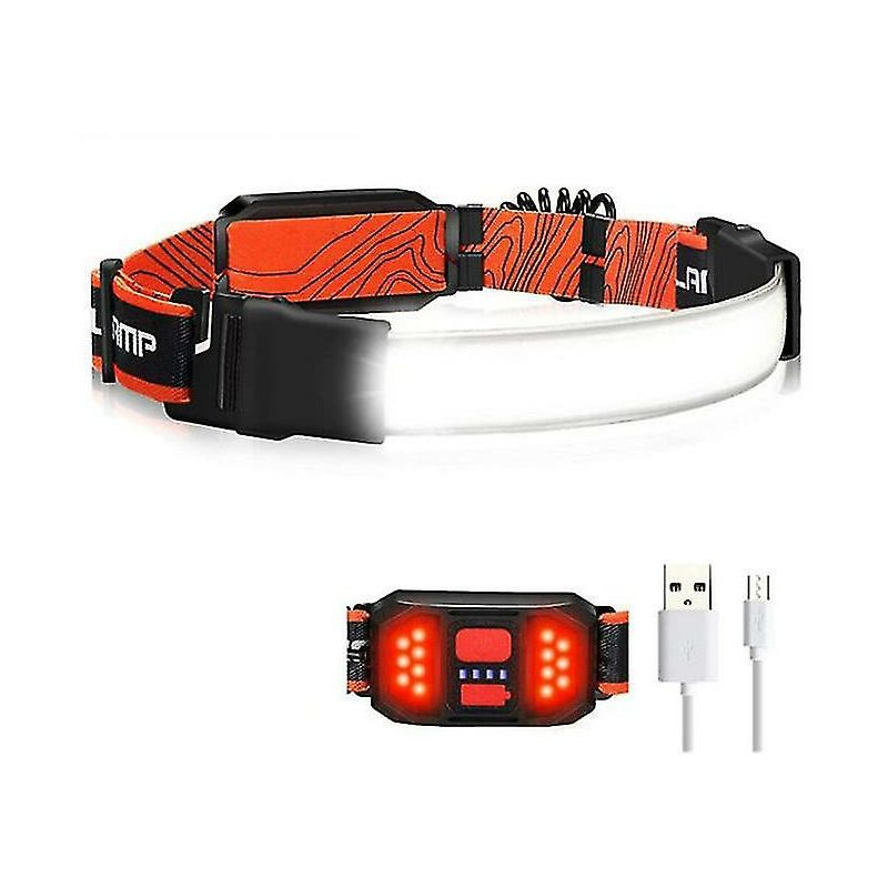 Faro frontale a LED a fascio largo Faro luminoso COB leggero Lampada frontale con fascia elastica a luce rossa ricaricabile tramite USB [Leggero e confortevole] La nostra torcia frontale a LED è dotata di una fascia regolabile, estensibile ed elastica per adattarsi alle dimensioni della tua testa. La lampada frontale leggera a fascio largo pesa solo 3,8 once (batteria integrata inclusa) e può essere indossata sulla testa, sull'elmetto, sui caschi senza alcun disagio. L'archetto regolabile si adatta a tutti gli adulti ed è fornito per rendere la testa confortevole. [3 modalità di illuminazione e vivavoce] Questa lampada frontale ricaricabile ha modalità di luce alta, bassa e stroboscopica. Luce di sicurezza rossa dietro la testa per avvertire corridori, biciclette o automobili. Facile da usare, basta premere il pulsante rosso sul vano batteria, il faro e il fanale posteriore di sicurezza rosso si accendono contemporaneamente. La luce della fascia a led a mani libere è ideale per