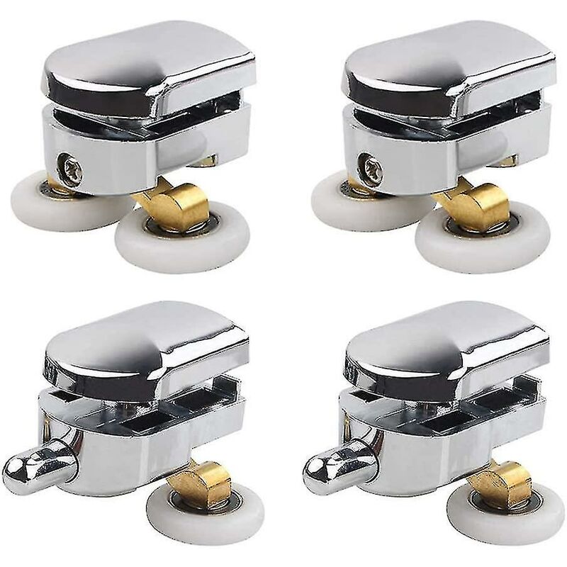 adatto per porte in vetro di spessore 4-6 mm, le aperture del vetro sono 12-14 mm. Non si sente alcun rumore quando si apre la porta della doccia e questi rulli per porte in vetro aiutano a farla scorrere senza intoppi. È facile da installare e mantenere. Questi rulli di ricambio per porte doccia sono adatti per la maggior parte dei bagni con doccia, bagni con doccia e cabine per bagni turchi e sono installati sulla parte superiore e inferiore della porta della doccia per facilitarne l'apertura e la chiusura. Scorrimento stabile e nessun rumore: le ruote del box doccia sono realizzate in rame e materiale in lega di plastica zincata, che ha una forte forza di supporto e antiruggine e possono essere utilizzate a lungo in un ambiente umido. Tirare la porta può essere spostato facilmente e non c'è rumore durante lo spostamento Le guide a doppio rullo della porta della doccia sono facili da
