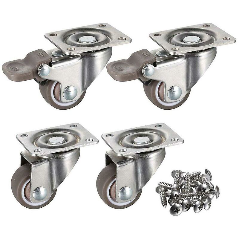 Include 4 ruote (2 ruote con freno e 2 senza) e 16 viti. Può essere ruotato di 360 gradi. Il freno ruota blocca solo la ruota Portata 11,3 kg per ruota, totale 45,4 kg. Cuscinetto a sfera: cuscinetto a sfera singolo^ Dimensioni piastra: 38 mm x 33 mm. Diametro del foro di montaggio: 4 mm Dimensioni della vite: 4 mm (diametro) 16 mm (lunghezza)^ Ruote in TPE con diametro di 2,5 cm. Molto calmo e stabile. Le ruote morbide e antiscivolo non lasciano segni sul pavimento^ Ampia gamma di applicazioni: ampiamente utilizzate per piccoli progetti e mobili in movimento, come cassettiere, cassapanche, contenitori sotto il letto, cestini per scarpe, cestini per giocattoli, armadietti, librerie, cavalletto, ecc.