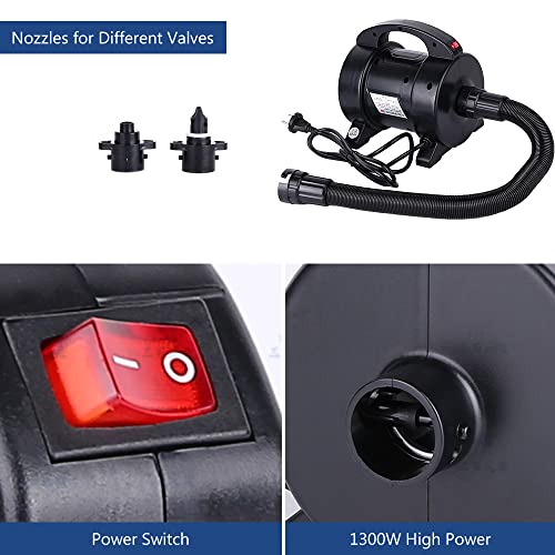 DONTZ Pompa elettrica Portatile 1300W Pompa per Materasso ad Aria Gonfiaggio rapido Pompa elettrica per gonfiaggio Gonfiatore Deflatore con 2 ugelli per gommone con Letto ad Aria,Pompa elettrica