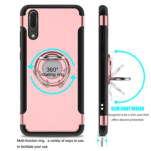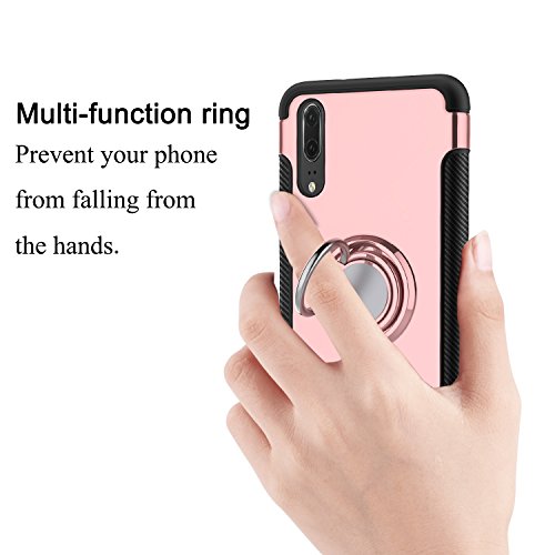 DONWELL Huawei P20 Case, Dual Layer Ibrida Shock-Absorption Anti-graffio 360 Gradi di Rotazione Anello del cavalletto Armatura Slim Custodia Protettiva con Magnetico