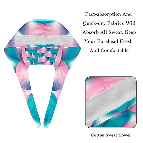 Dony Confezione da 2 cappucci da lavoro con bottoni in cotone con fascia per sudore regolabile e cravatta posteriore per donne e uomini, taglia unica - blu rosa pesce coda pelle sirena