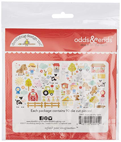 La collezione Doodlebug Down On The Farm Odds & Ends, 90 pezzi di cartone fustellato include animali della fattoria, alberi, recinzioni, fiori, fienili, una casa, agricoltura, un sole, nastri e molto altro ancora.