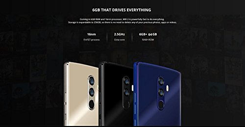 DOOGEE MIX 2-5,99 pollici (rapporto 18: 9) FHD Android 4G smartphone Riconoscimento facciale, Helio P25 Octa Core 2,5 GHz 6 GB + 64 GB, Fotocamera Quad (grandangolo) 4060 mAh - Blu