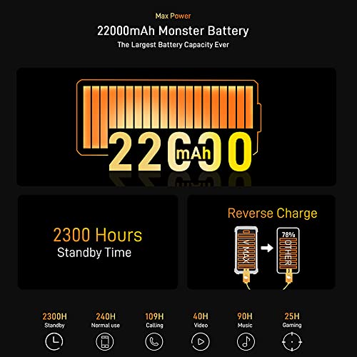 【Batteria a lunga durata da 22000 mAh + ricarica rapida di tipo C da 33 W】 DOOGEE V MAX è dotato di un'enorme batteria da 22000 mAh all'interno e può gestire giochi intensi per lunghe ore. Può durare facilmente circa due giorni con una singola carica ed essere completamente ricaricato in sole 6 ore. Goditi la ricarica rapida con cavi da 33 W sempre e ovunque.