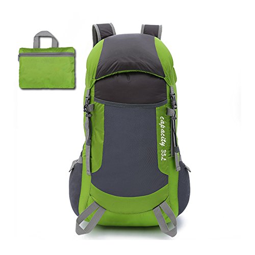 Doolland 35L ultra leggero pieghevole zaino da escursionismo multifunzionale impermeabile ripiegabile, casual zaino da campeggio per outdoor sport arrampicata Mountaineer, Green, 28cm * 17cm * 56cm