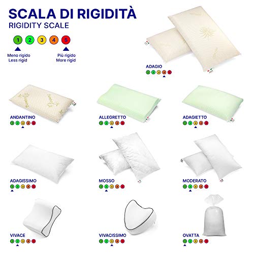 le materie prime sono di altissima qualità e assicurano una lunga durata del prodotto. Il cuscino Adagio è ergonomico, indeformabile e anallergico.