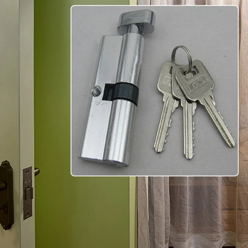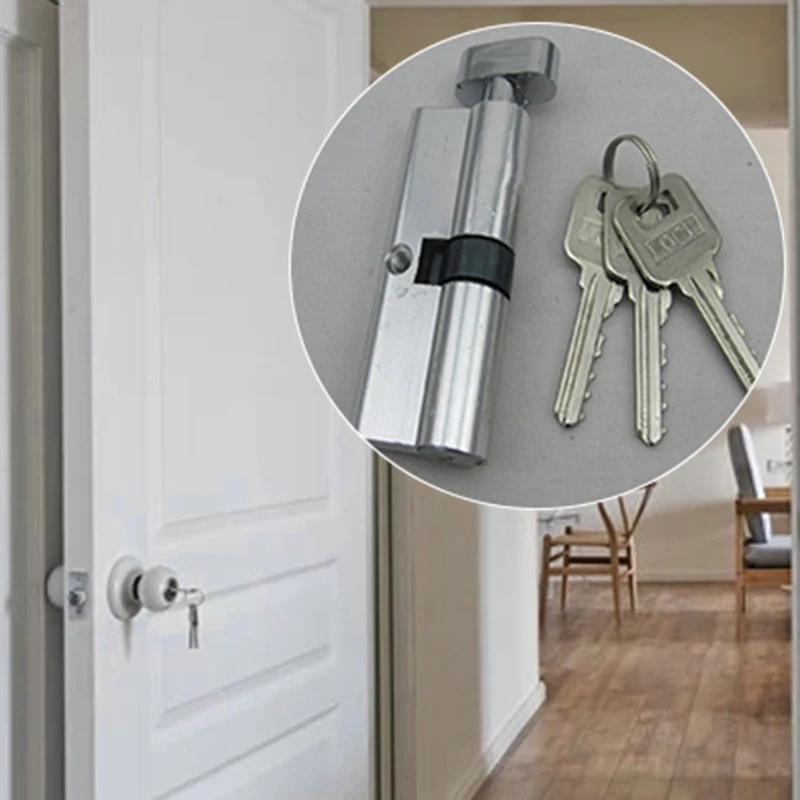 Door Cylinder Security Copper Lock Cylinder Interior Bedroom Living Handle Brass Key Locking With 3 Keys Tools