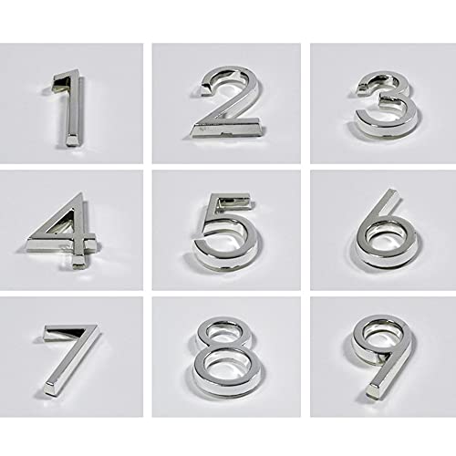 Door Numbers Self-Adhesive Address Numbers Metal Plating House Numbers for House Mailbox Apartment Office 0 to 9 (50mm, Silver)