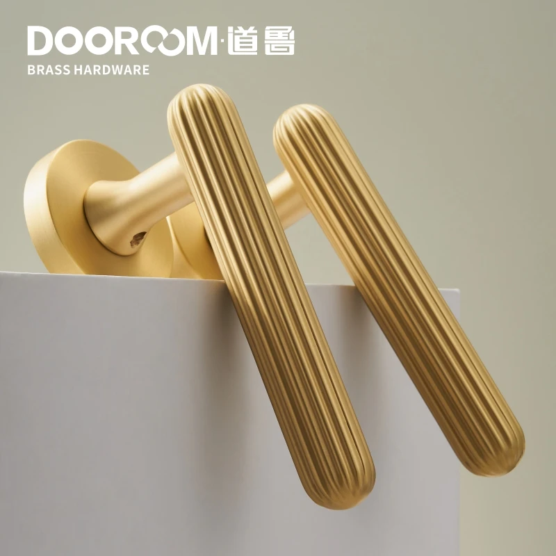 Dooroom Brass Door Lock Set Modern Simple European Interiror Bedroom Bathroom Double Wood Door Lever Set Dummy Handle Knob