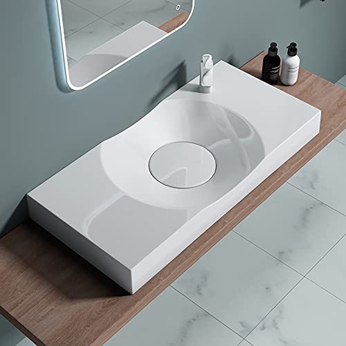 DESIGN SEMPLICE: Il lavabo in pietra artificiale con linee perfette è resistente e antigraffio. Goditi la sua bellezza.