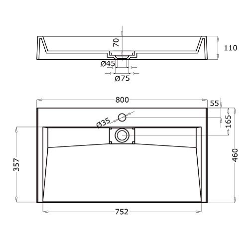 TECNOLOGIA DI STAMPAGGIO MONOPEZZO: Il lavabo è realizzato in pietra artificiale, sano ed ecologico, senza radiazioni. La tecnologia di stampaggio monopezzo mostra la qualità alta del lavabo. Misure: Larghezza: 80 cm, Profondità: 46 cm, Altezza: 11 cm
