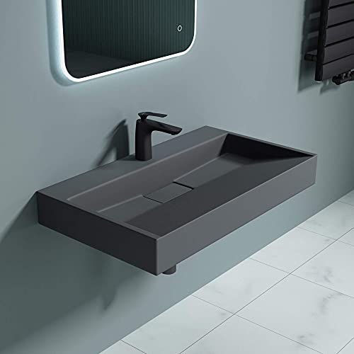 Doporro Lavabo da Appoggio, Lavabo Bagno Sospeso 80x46x11cm, Lavandino Bagno da Minerale Fuso Colossum19-800, un Foro per Rubinetteria,Antracite Opaco