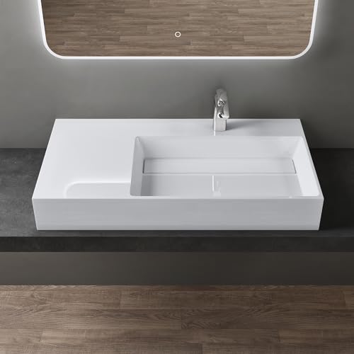 Doporro Lavabo da Appoggio, Lavabo Bagno Sospeso 90x48x13cm, Lavandino Bagno a Destra Rettangolare da Marmo Fuso Colossum12-900