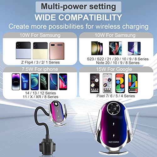Doppia Bobina 15W Qi Caricatore Wireless Auto Rapida per Porta Tazza Supporto, Universal Sensore Caricabatteria da Auto Senza Fili, Porta Cellulare Auto per Samsung Galaxy Z Flip 4/3/2 iPhone Google