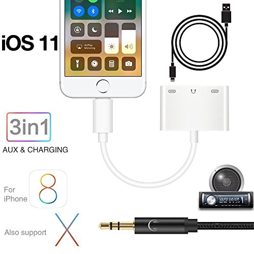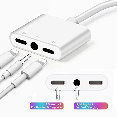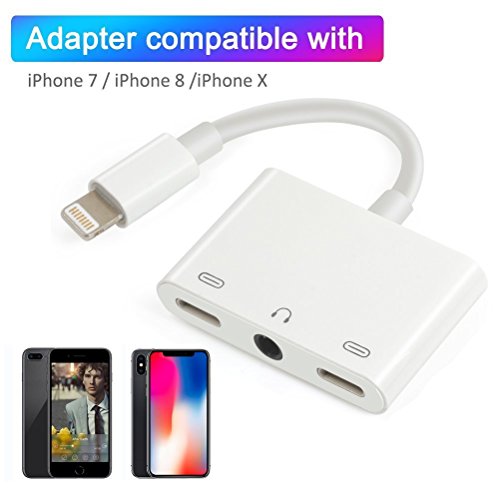 Doppia illuminazione divisore adattatore & 3.5mm audio jack cuffie adattatore per iphone x / 8 / 8 più / 7 / 7 plus / 6 / 6 e 3 in 1 fulmine cuffia, sostiene degli 11 o prima (bianco)