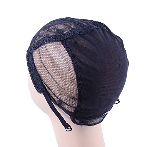 Doppia pizzo cappellino con parrucca Wig Cap per realizzare parrucche con cinturino regolabile sul retro Cappucci per parrucca senza colla Hairnets (nero L 56cm)