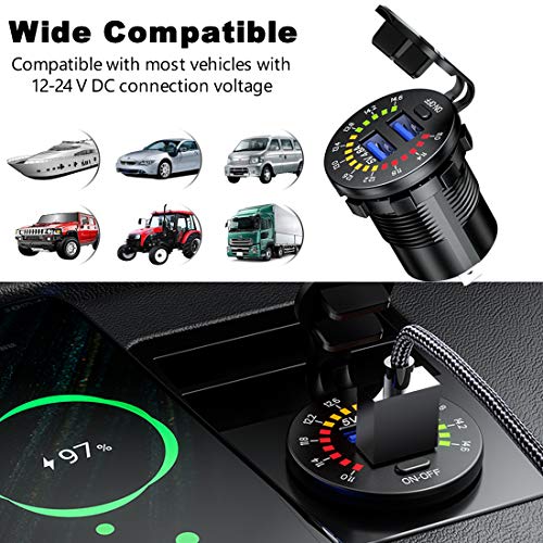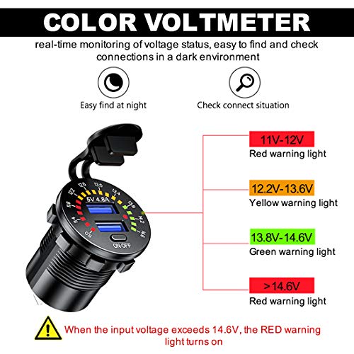Doppia presa USB per auto 5V 4.8A Voltmetro digitale a colori Caricabatteria da auto 12V con interruttore ON/OFF per auto, camion, moto, yacht