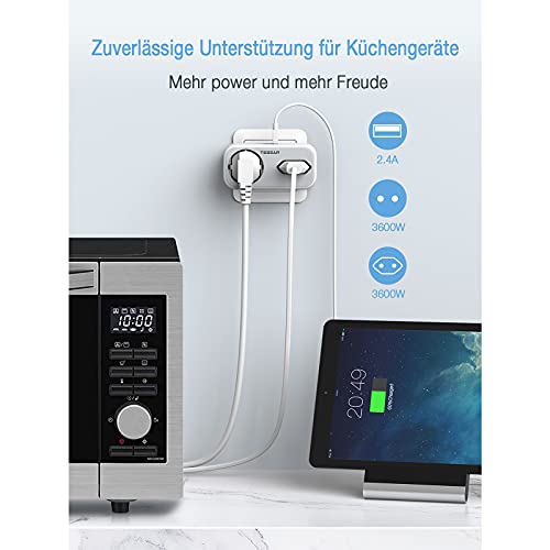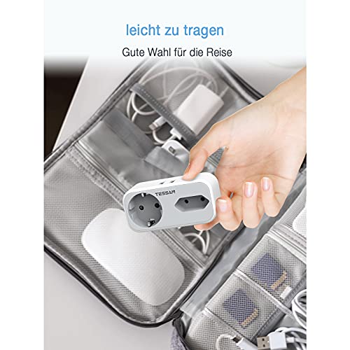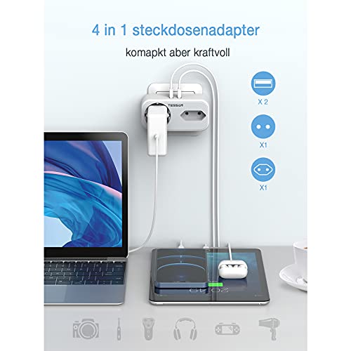 Doppia Presa, TESSAN Doppia Presa Schuko USB, Presa multipla con 2 Prese è 2 Porte USB, Presa Multipla Salvaspazio Compatibile per Laptop SmartPhone, Adattatore Presa Elettriche per Casa e Ufficio