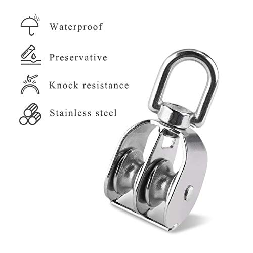 Doppia puleggia, puleggia in acciaio inox, gru a fune liscia rotante carico 75 kg-2 pezzi