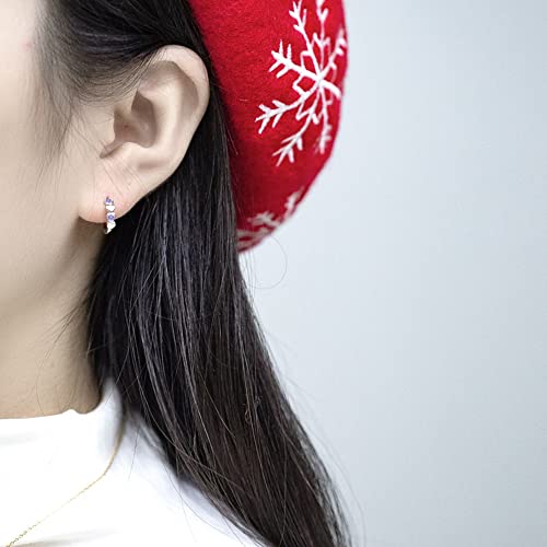 Doppio Cuore d'Amore Cubic Zirconia Piccoli Orecchini a Cerchio Per Donne Ragazze Adolescenti Argento Sterling Piccoli Carini Hoops Cartilagine Ipoallergenico Orecchie Sensibili Birthstone Ametista