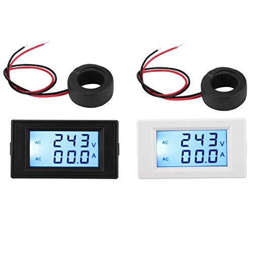 Doppio Display Voltmetro Amperometro, Rilevatore Tensione Corrente Misuratore Pannello Amp Volt Gauge, D69-2042 AC80-300V 0-50A 0-100A (Bianca)