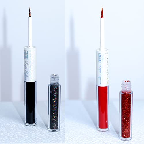 【Doppio eyeliner liquido】 Altamente pigmentato eyeliner,un'estremità è di colore opaco, e l'altra estremità è scintillante colore glitter.